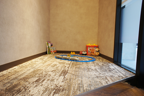 待合室にはお子様をお連れになっても安心なキッズスペースがあります。おもちゃもご用意しています。