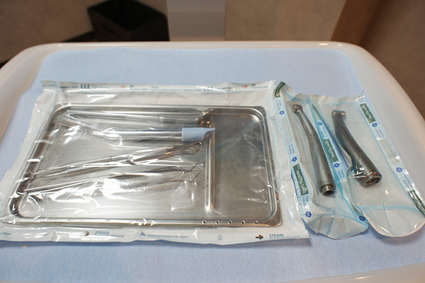 当院では治療器具の使い回しは一切しません。滅菌器で滅菌した治療器具は即座に滅菌パックに保存し、治療直前まで開封することはありません。