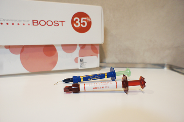 オパールエッセンスブーストはシリンジ内で薬材を混合させる、オフィスホワイトニング材です。個人差はありますが約1時間から2時間の施術で結果を得られます。
